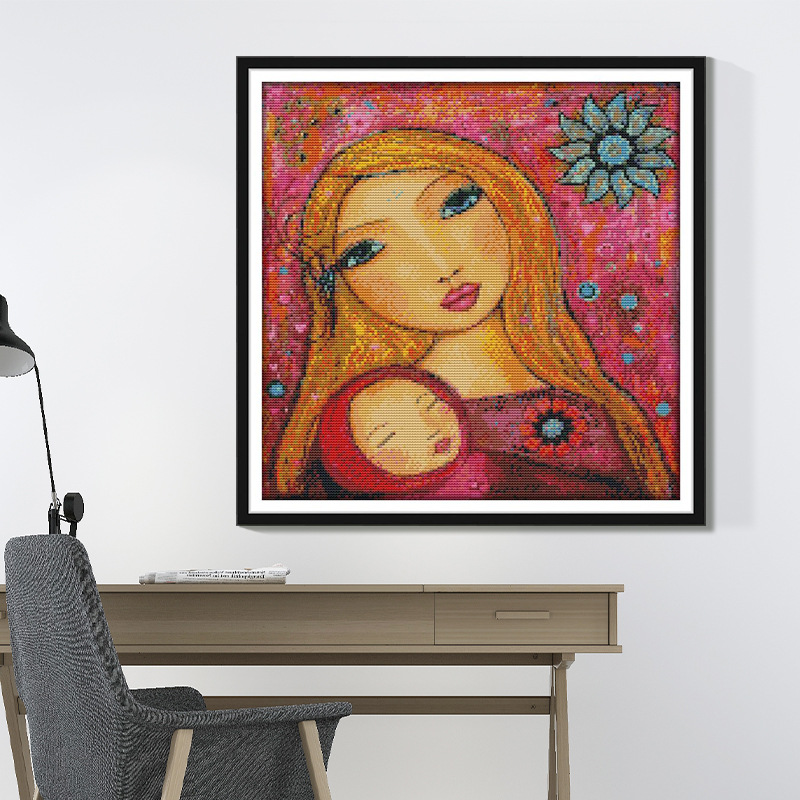 クロスボーダーの新商品の十字の刺繍の人物シリーズの水彩の母と娘の図の刺繍の材料は寝室の装飾画のメーカーの卸売りを包みます。