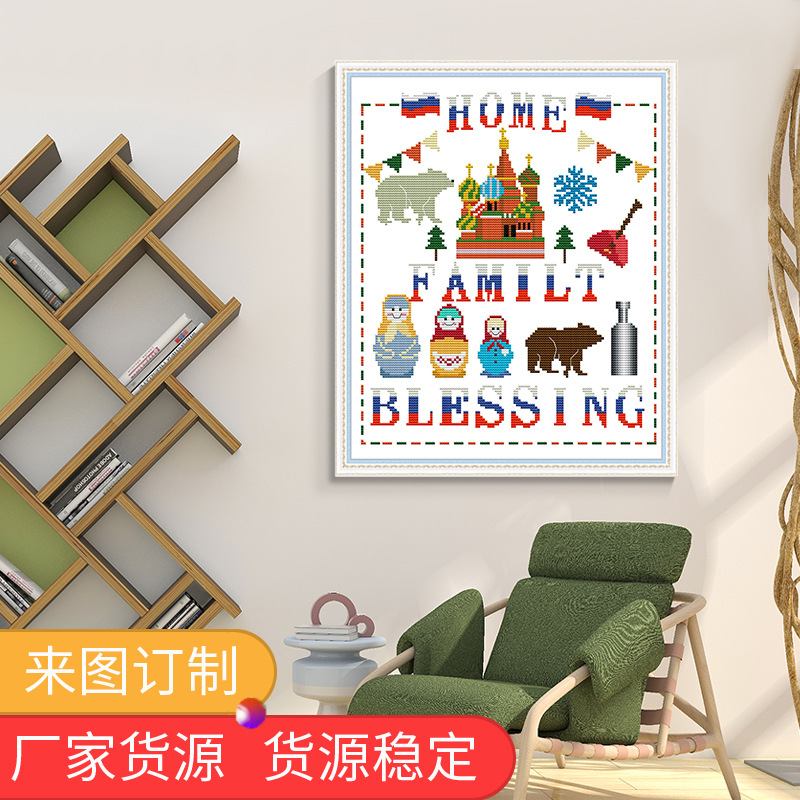 針の工夫の十字の刺繍の工場の新型のプリントの十字の刺繍のエンドウ豆の家の欧米のセットの材料はメーカーを包んで卸売りして加盟します。
