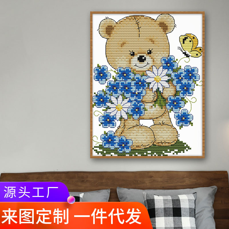 国境を越えた新製品の十字刺繍アニメ動物が花熊を刺繍して寝室の装飾画卸売りをした