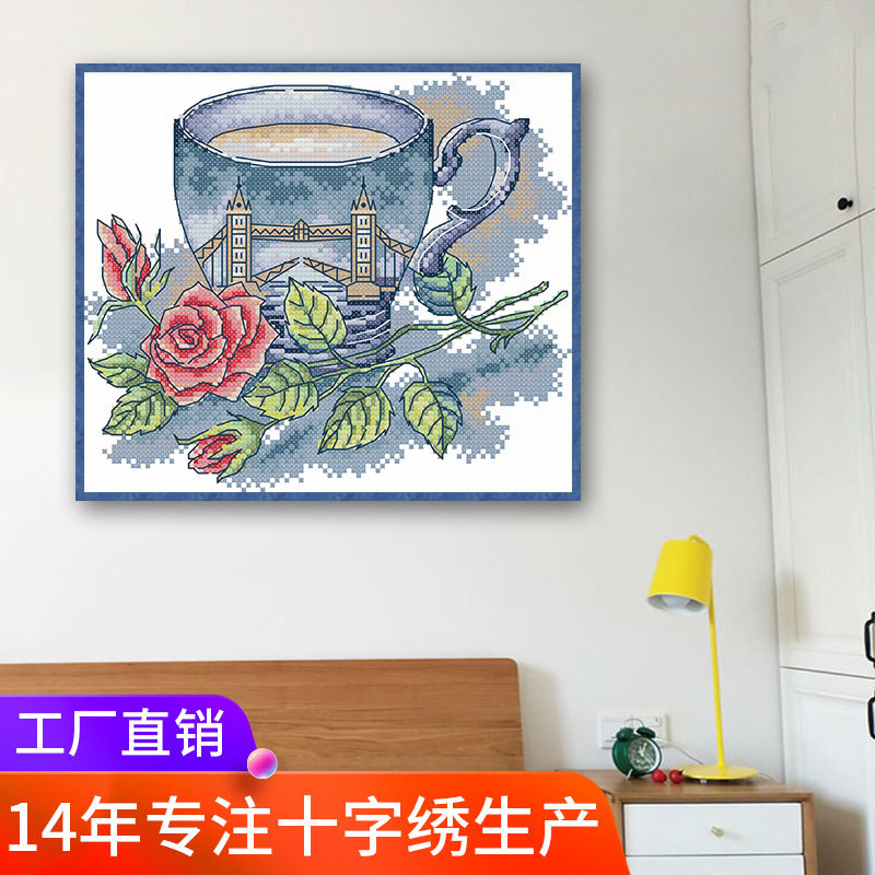 アマゾンの新商品の十字刺繍イギリスのティーカップのバラの午後のお茶の客間のレストランの装飾画のメーカーの商品の供給源の卸売り
