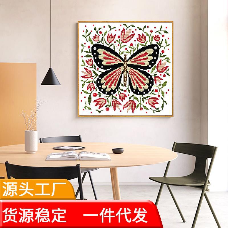 新型プリント十字刺繍動物シリーズ猫と蝶清新でかわいい刺繍客間寝室装飾卸売り
