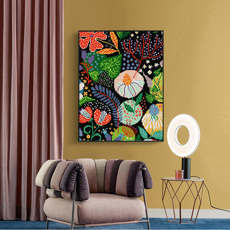 楽しい99十字の刺繍の植物の花卉のカラフルなレストランの装飾画の刺繍の材料はメーカーを包んで代行します。