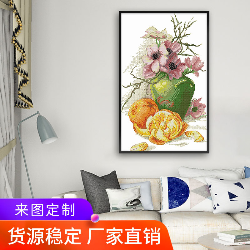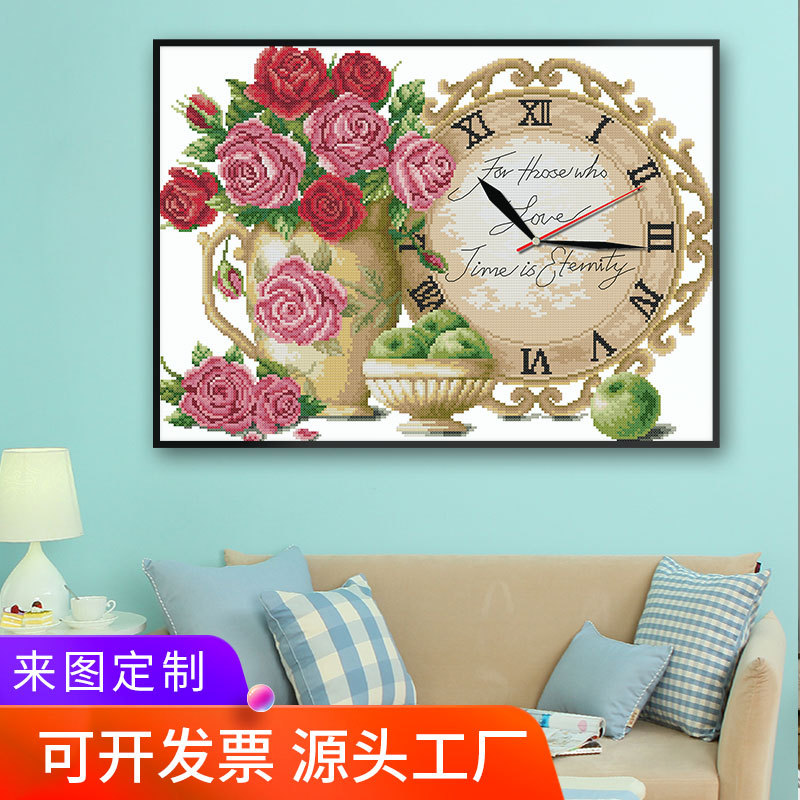 歓楽99新型刺繍十字刺繍静止物シリーズ花瓶鐘ヨーロッパ式復古寝室装飾画代理