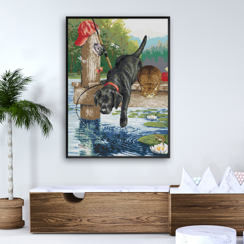 ジョイサンデーの十字の刺繍動物の犬の釣りの刺繍の材料はダイヤモンドを包んで客間の装飾を描きます。
