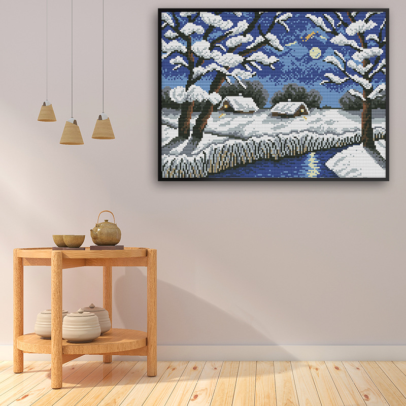 Nkf十字刺繍風景シリーズ冬の河景刺繍材料包ダイヤモンド画レストラン装飾代理