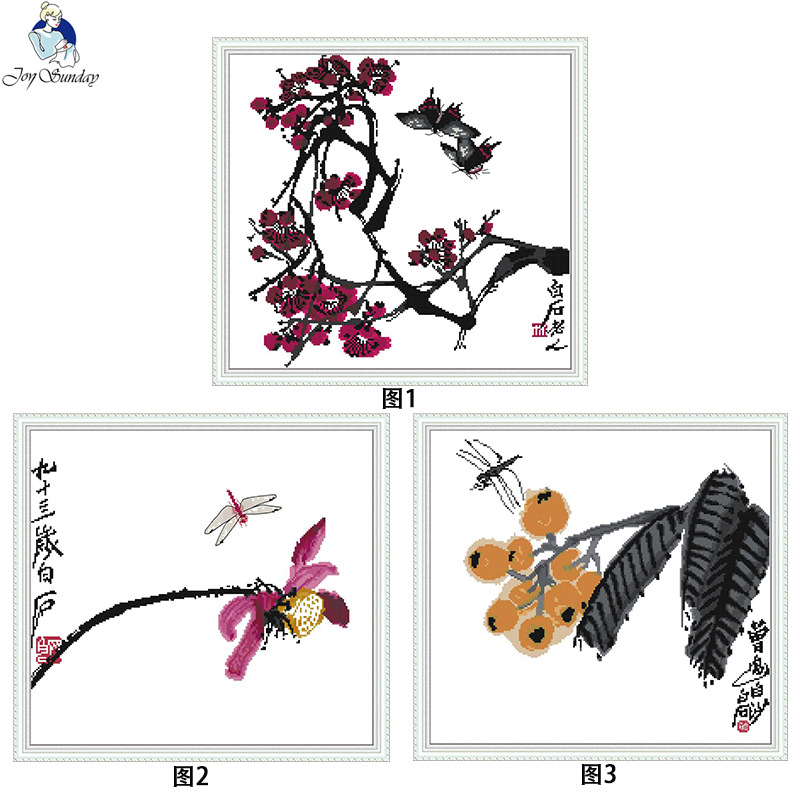 歓楽99十字刺繍中国風シリーズ書画梅のハスの花ビワ刺繍材料包書斎装飾卸売り