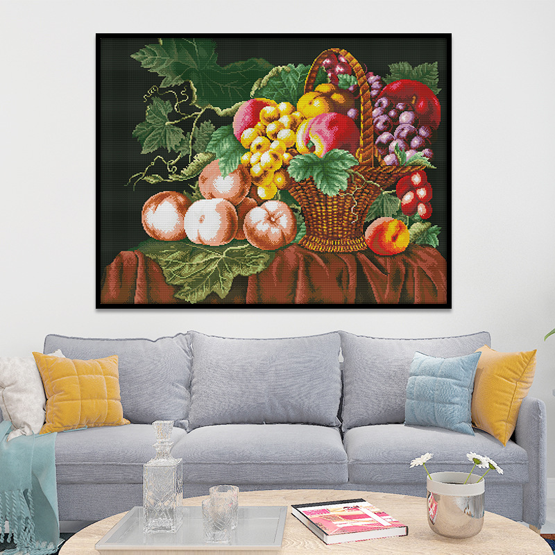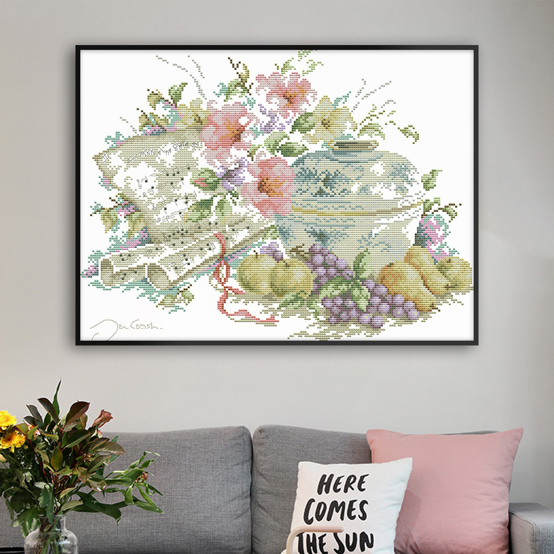 ジョイサンデー十字の刺繍の静物シリーズの果物と音楽の客間の装飾の刺繍の材料はメーカーを包んで卸売りします。