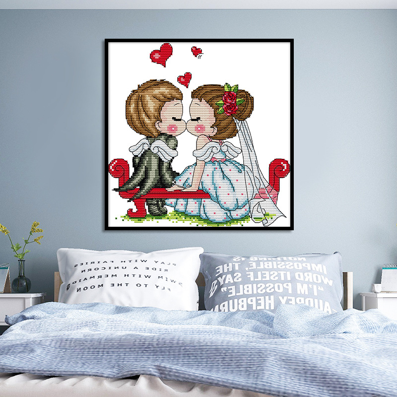 国境を越えた新商品の十字刺繍アニメシリーズの天使のキス結婚室の装飾は友達の寝室の小幅なメーカーに卸売りします。