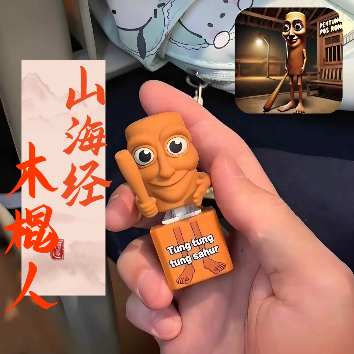 トントン木製スティックマン アメリカ山海記人形キーホルダー 靴を履いたサメの置物 ストレス解消おもちゃ 漫画