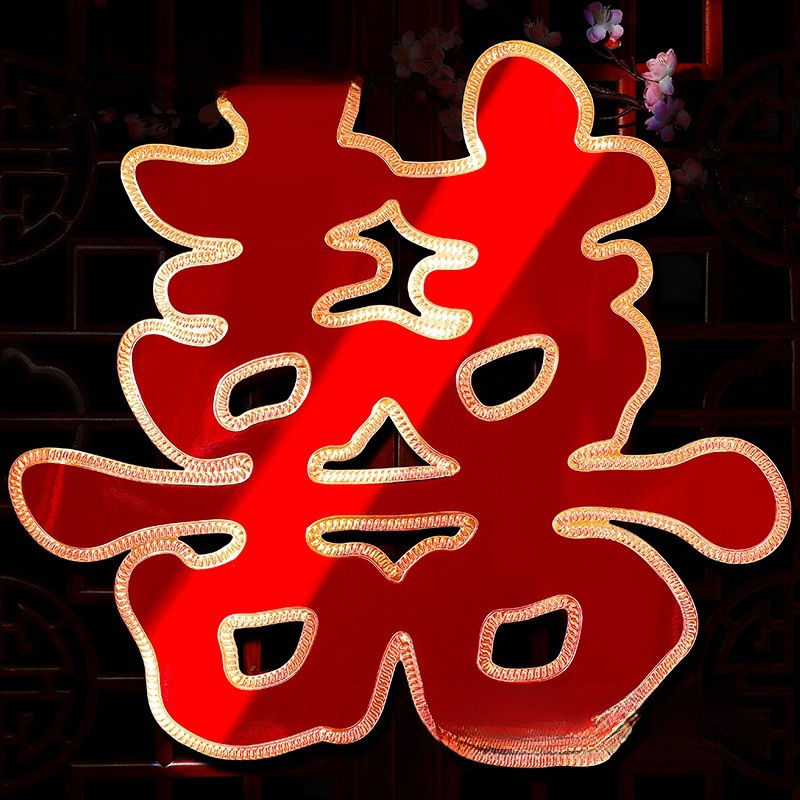 結婚式のハッピーワードステッカー、ドアステッカー、囍の文字、結婚式の男性と女性の部屋のドアの装飾、結婚式のノヴァン