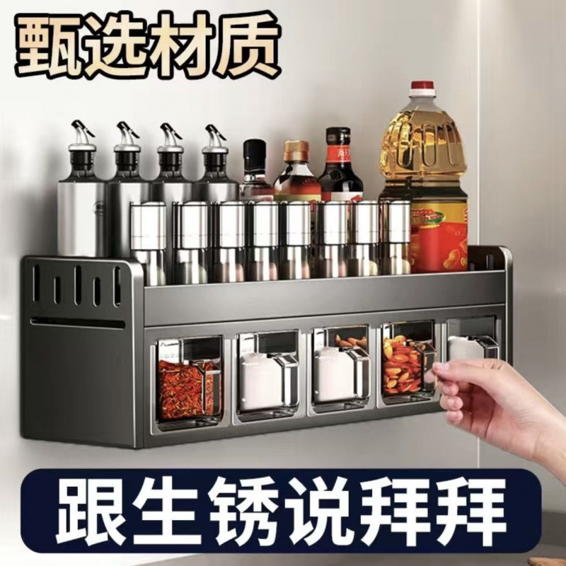 新しいキッチン収納ラック、パンチフリー壁掛けスパイスラック、多機能収納ラック、家庭用収納ラック、Novan