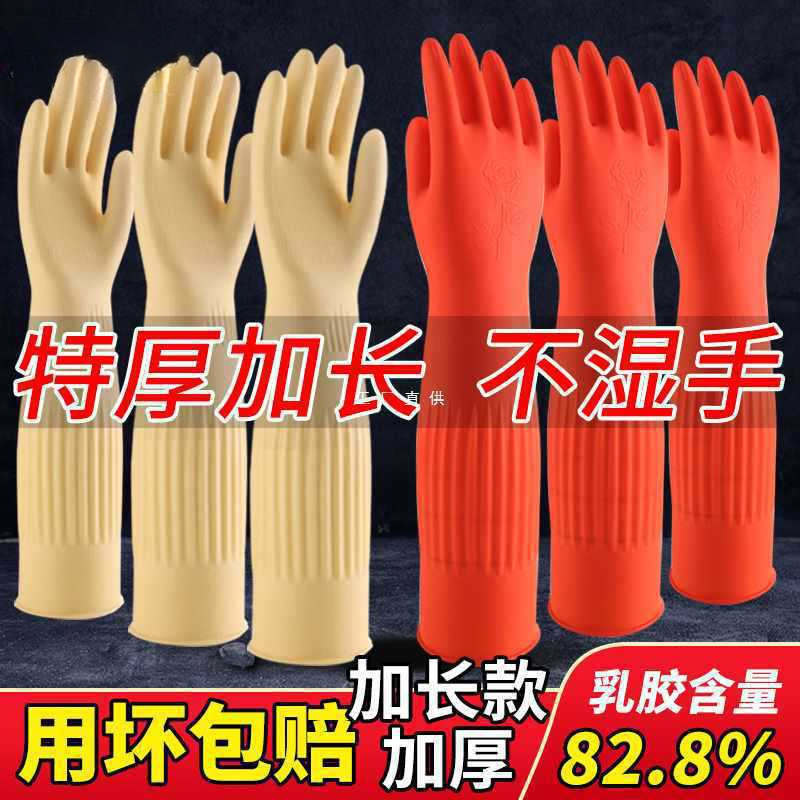 女性が食器や衣類を洗うための厚みのあるベルベットの長いゴム製防水手袋、長い家事、キッチン用の長いゴム製手袋
