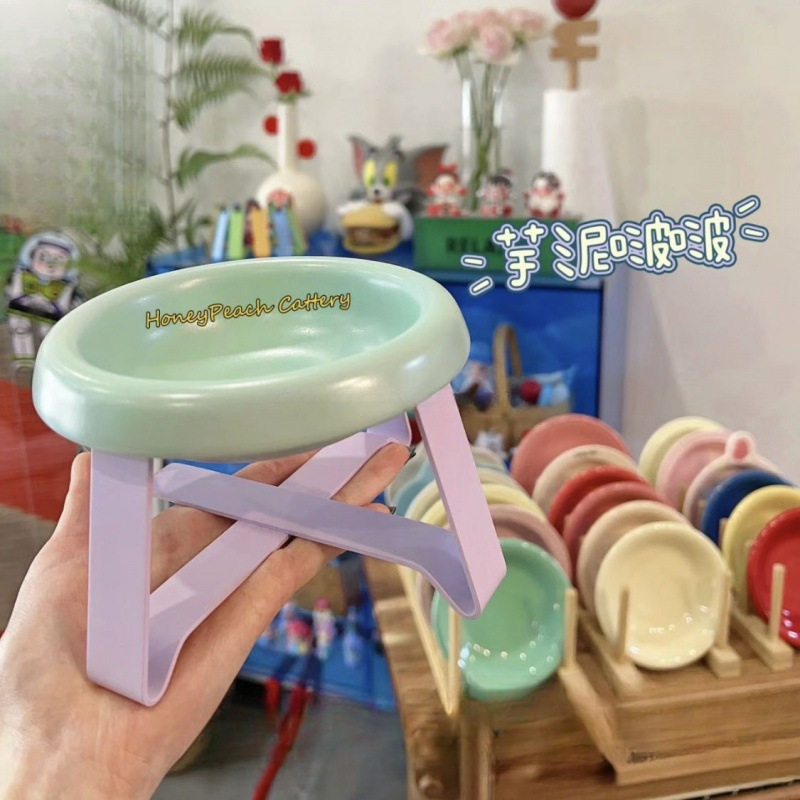 高見えする猫用丼スタンド、空飛ぶ円盤鉄スタンド、首を保護するペット猫用ボウル