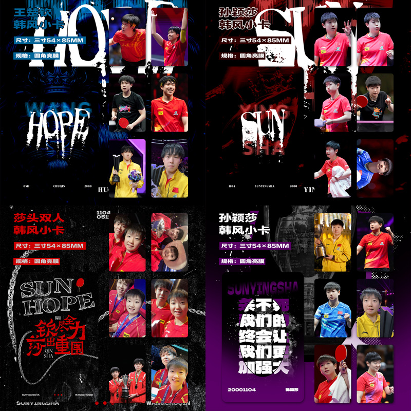 Shatou Sun Yingsha Wang Chuqin 韓国風セルフィーカード 角丸 3inch セット 6 つのスター周辺サポートアイテム
