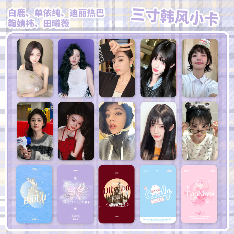 白鹿単依純迪麗熱巴チュ婧田セイ薇韓風小カード自撮りカード角三寸セット六枚