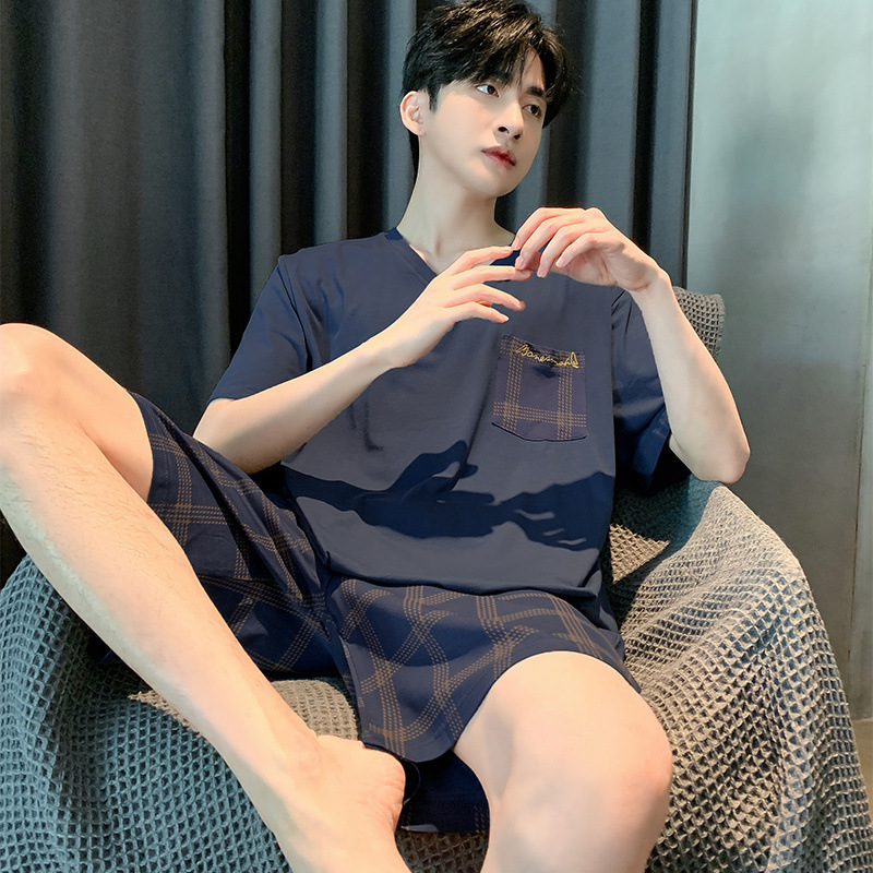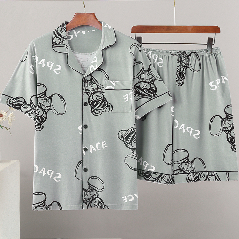 メンズパジャマサマースーツ半袖ショーツ薄手のセットは屋外で着用可能夏の大きいサイズのホーム服スーツ