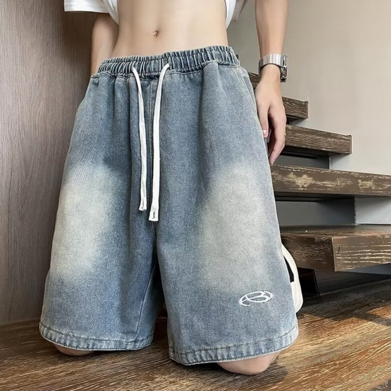 2025 新しい夏のデニムショートパンツメンズ多用途トレンディなウォッシュルーズストレートパンツカジュアル薄い 5 分パンツ