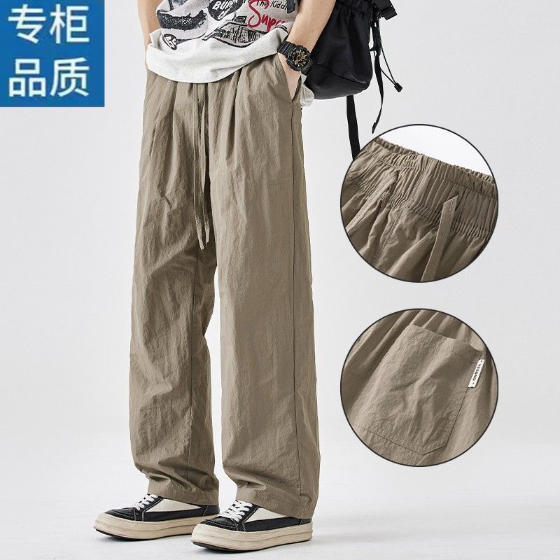 2025 夏薄いカジュアルワイドレッグ作業服夏のズボンアイスシルク速乾性スポーツパンツメンズルーズストレート