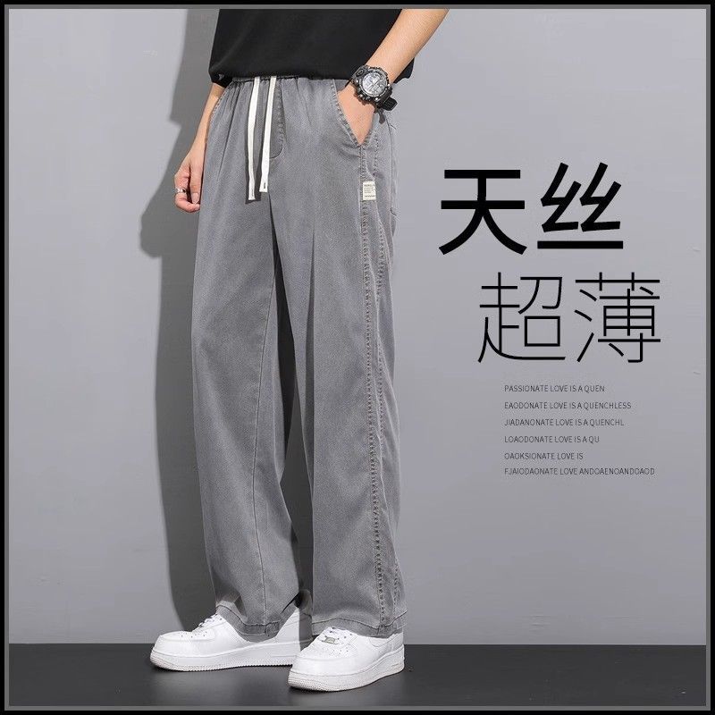 テンセルジーンズメンズ夏薄いトレンディなブランドストレートルーズメンズアイスシルクワイドレッグ夏カジュアルロングパンツ