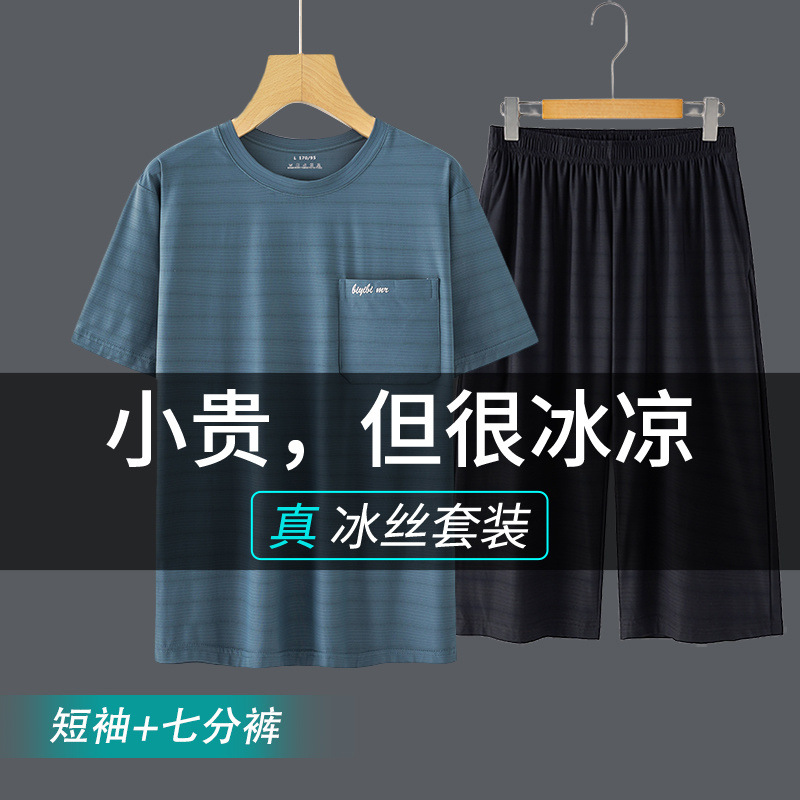お父さん夏半袖七分丈ショーツ2枚中高年男性用アイスシルク速乾夏カジュアルスポーツスーツ男性用