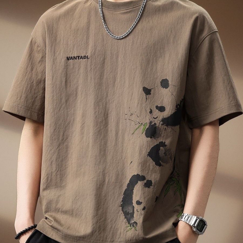 パンダ純綿ハイエンド半袖 Tシャツプリント夏の新しいルーズメンズ半袖 Tシャツ Tシャツ大きいサイズイン