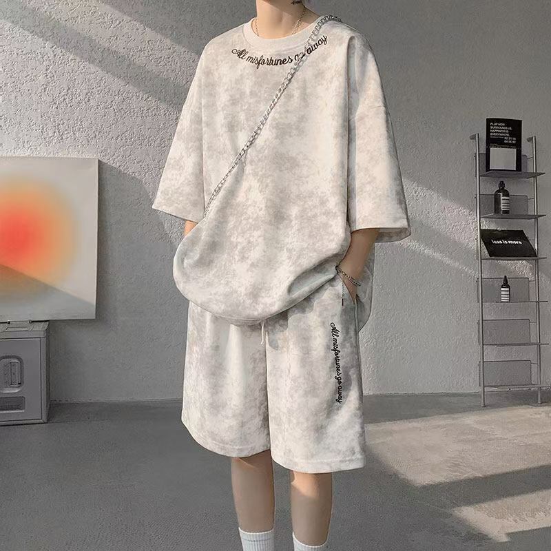 タイダイカジュアル Tシャツ半袖スーツメンズ夏ルーズハンサムスポーツ Tシャツショーツマッチングプラスサイズカジュアルスーツ