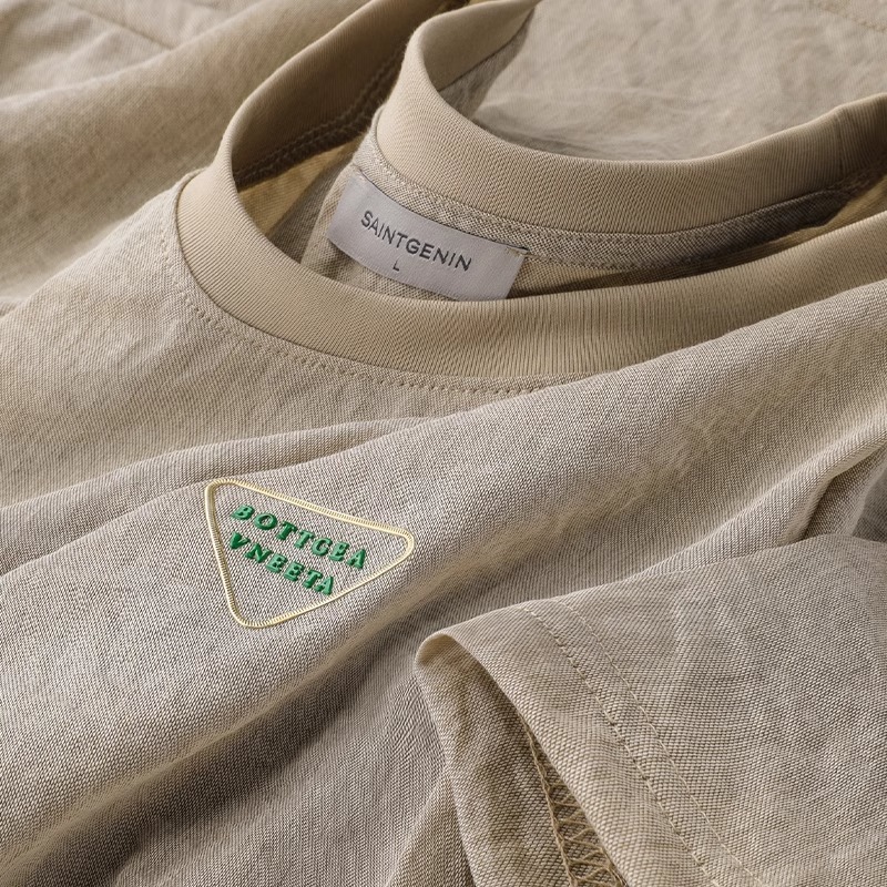 ヨーロッパ商品 2025 夏〜軽量綿とリネンの半袖 T シャツメンズアイスシルク薄手通気性スリム半袖シャツトップスメンズ