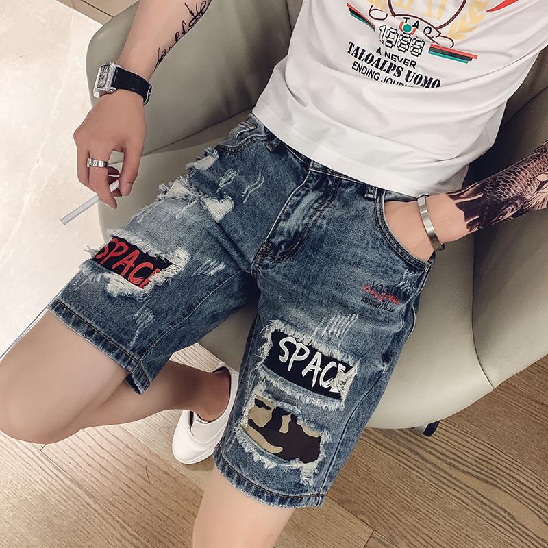 サマースピリットボーイズリップドデニムショートパンツメンズ韓国風カジュアル万能ミッドパンツソーシャルヒューマンマントレンド