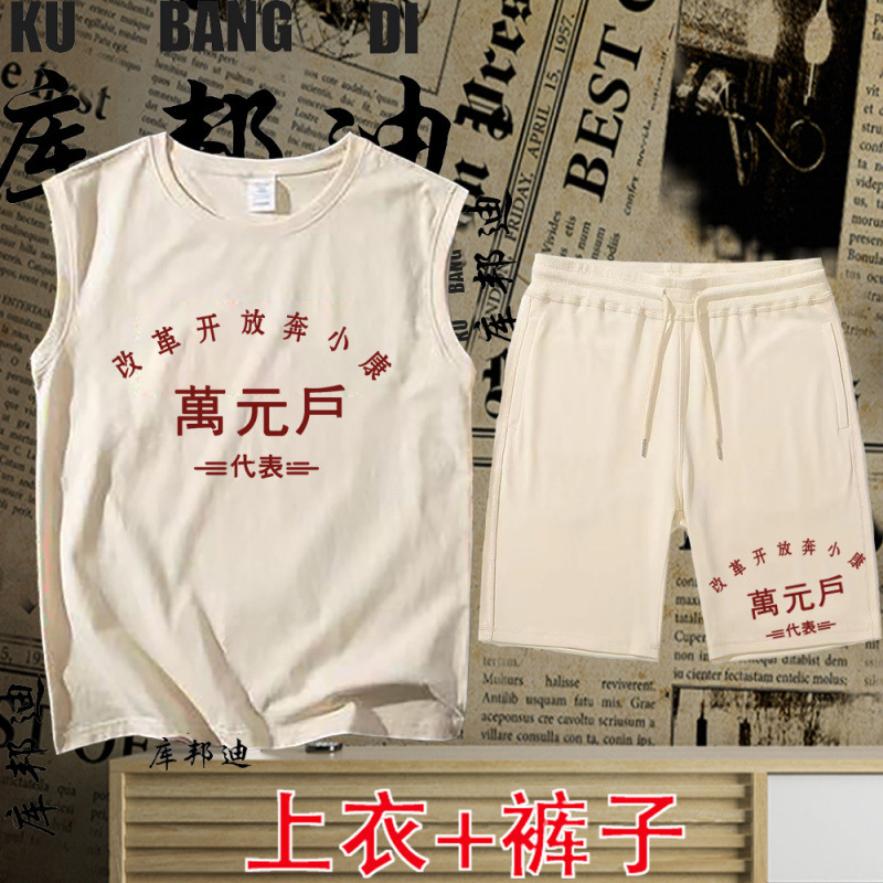 中国のトレンドレトロノスタルジックな男性と女性のカップル10万世帯クリエイティブ面白いノースリーブベストベストメンズテキストショーツスーツ
