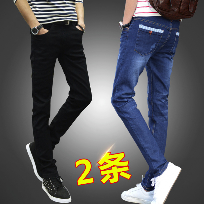 韓国版のトレンディな夏のストレッチジーンズメンズストレートビジネス小足カジュアルロングパンツスリムルーズ紳士服