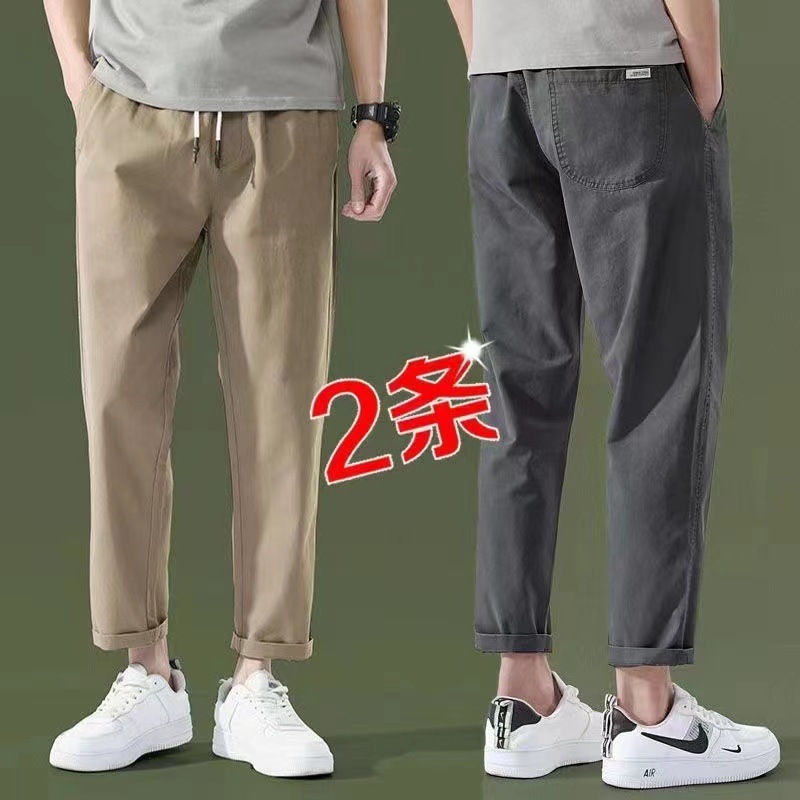 メンズ夏薄手ストレート9点パンツ、トレンド無地カジュアルパンツ、メンズ万能ゆったり9点オーバーオール