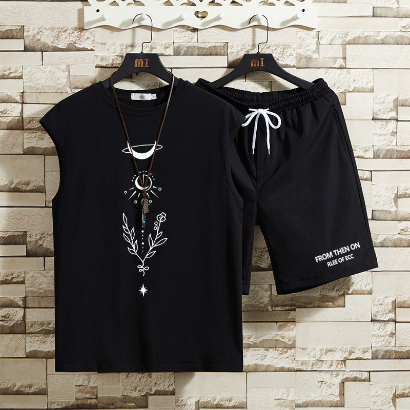 カジュアルトレンドベストスーツメンズ夏ルーズベストTシャツショーツマッチング学生ハンサムトレンディブランド2点セット
