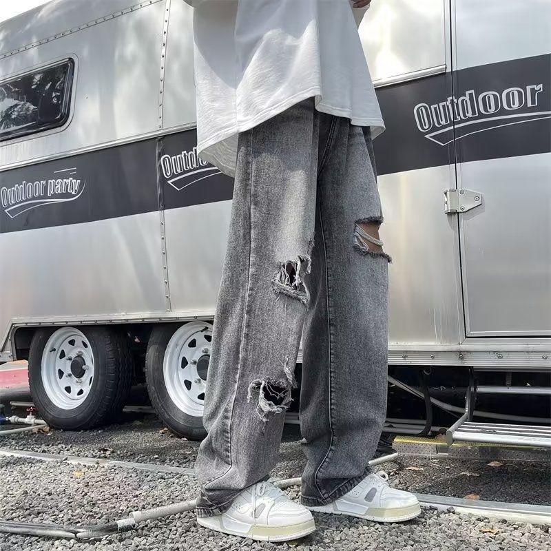 メンズリップドジーンズ、ヨーロッパとアメリカの雰囲気、ハンサムなストレートパンツ、夏のアメリカンハイストリートインレトロパンツ、トレンディ