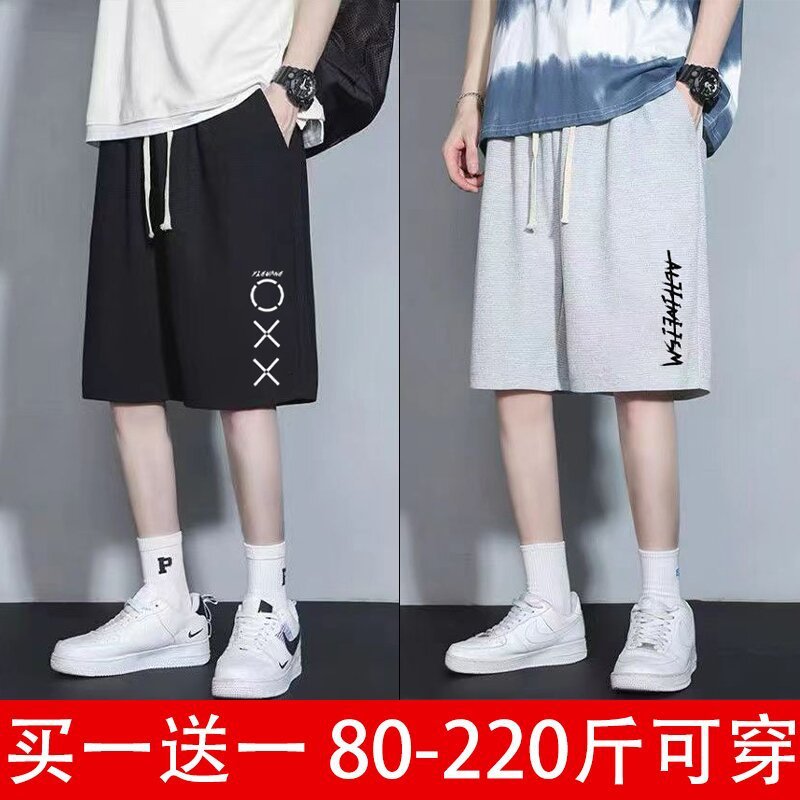 メンズカジュアルショートパンツ、夏のトレンドブランド、ゆったりプラスサイズ、中パンツ、薄手のアウターウェア、スポーツ5分丈パンツ
