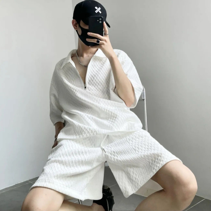 夏用半袖ショートパンツカジュアルスーツ、高級トレンドブランド、ゆったりとした半袖ラペル、高級感のある2点セット
