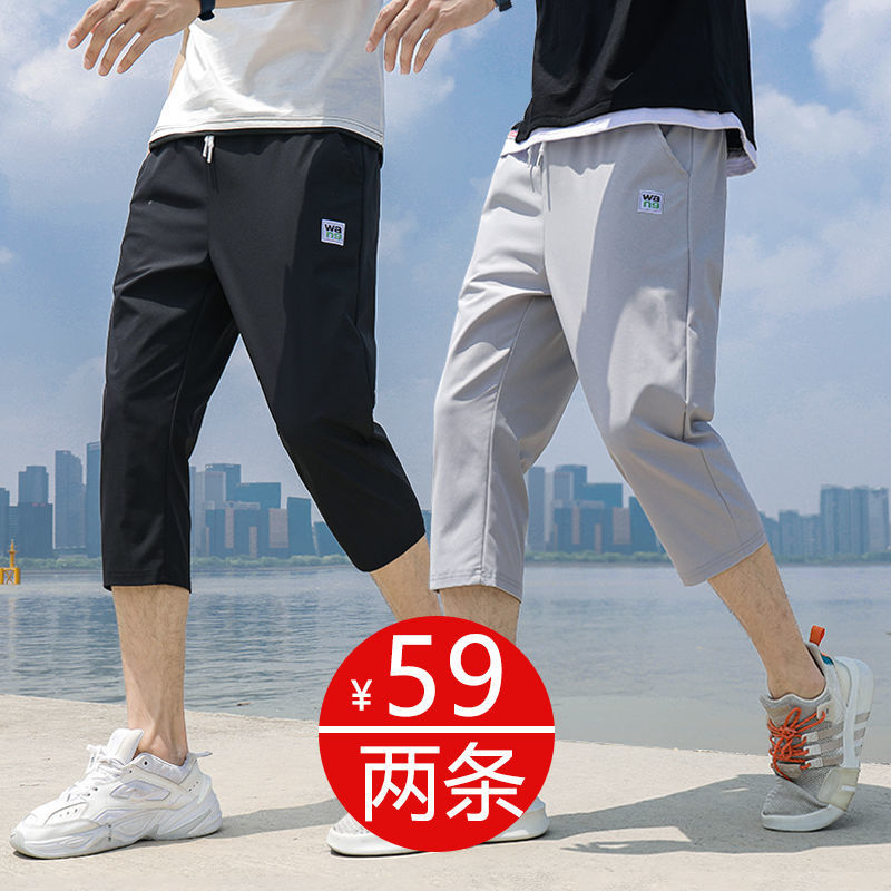 メンズサマーショートパンツ、メンズ薄手クロップドパンツ、トレンド速乾スポーツ7点パンツ、メンズゆったり8点カジュアルパンツ