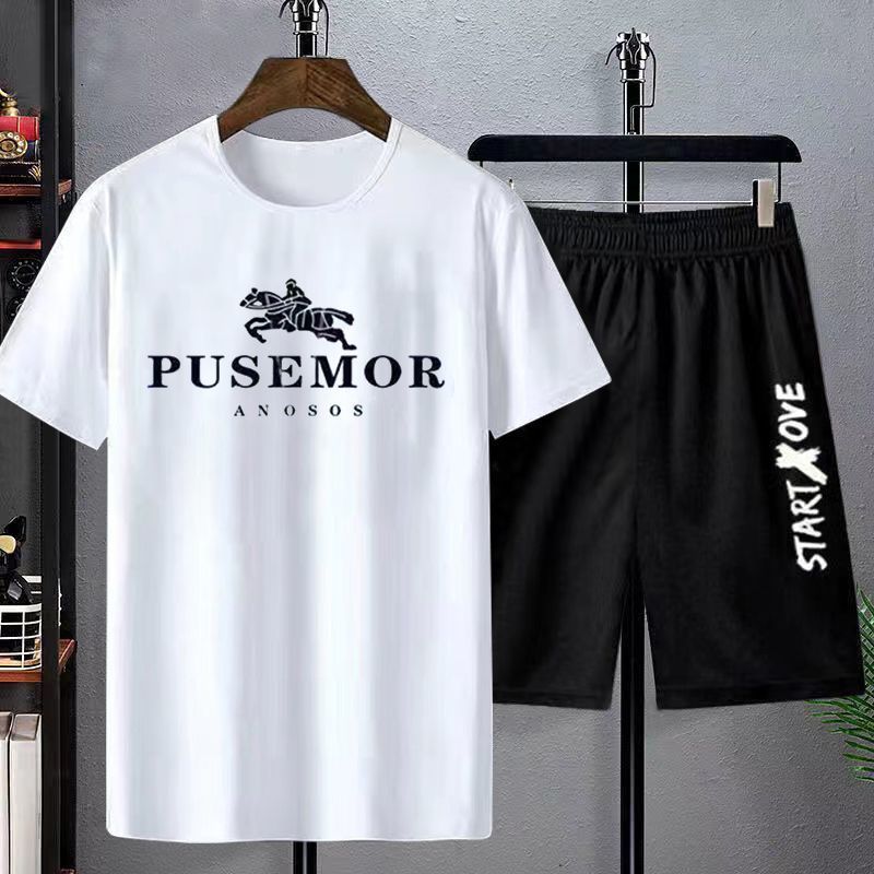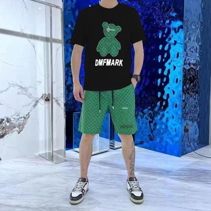 夏の新作メンズカジュアルスポーツトレンドスーツ半袖ショーツ5点パンツツーピーススーツランニングフィットネスウェア
