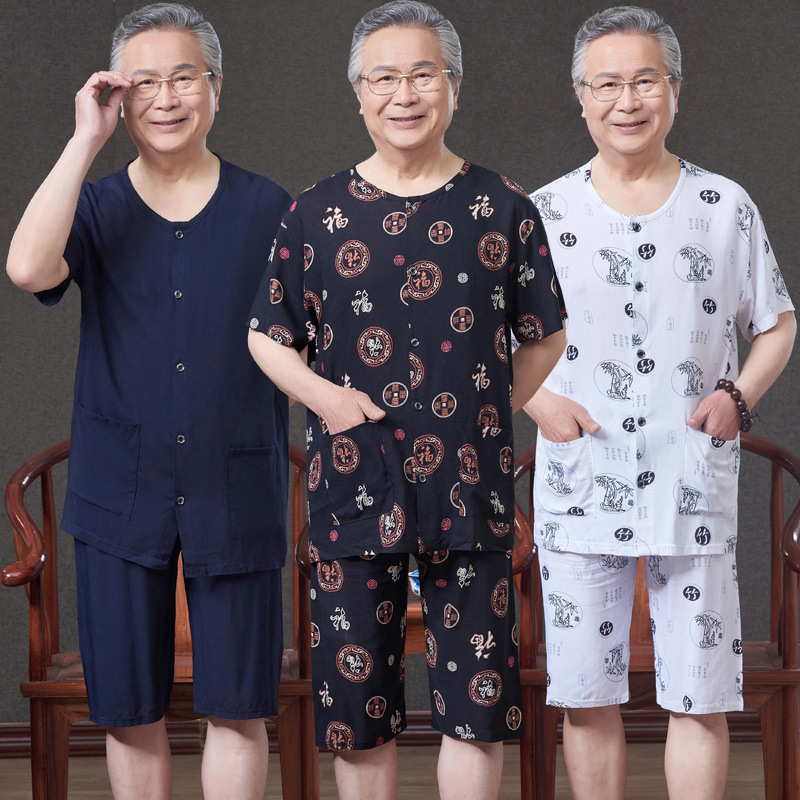 中高年男性の綿シルクサマーカーディガン、高齢者綿シルク半袖スーツ、おじいちゃんお父さん大きいサイズのホーム服