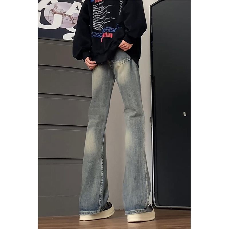 クリーンフィット レトロ ブルー ジーンズ メンズ アメリカン ハイストリート バイブ スタイル パンツ ウォッシュド ストレート シミターパンツ