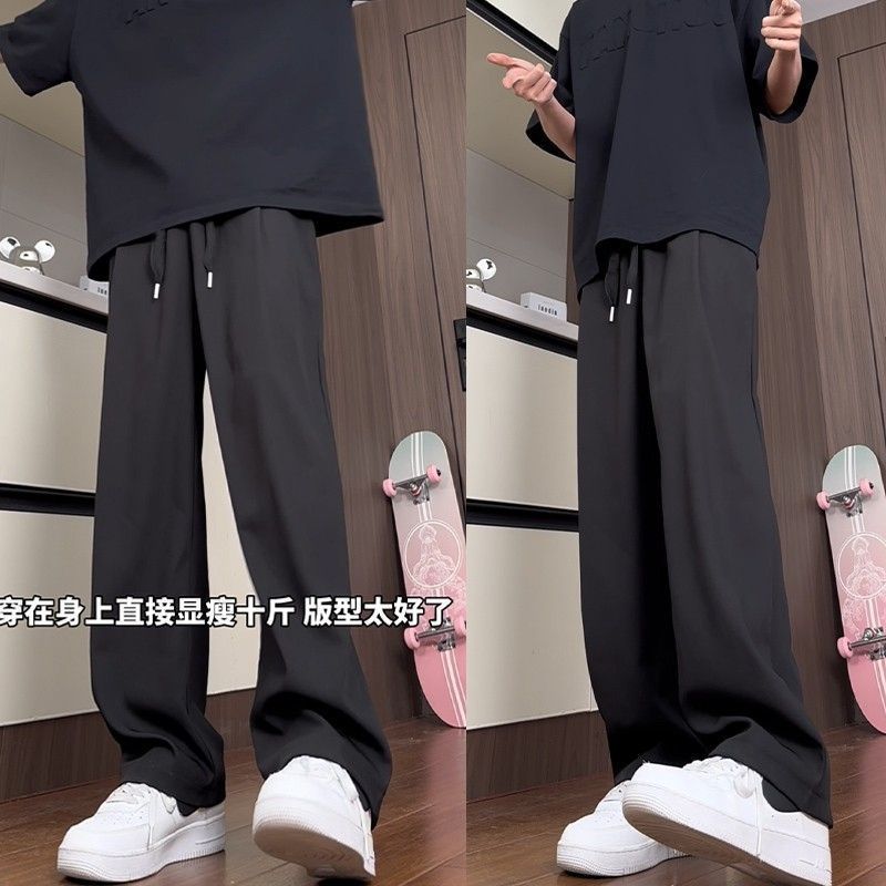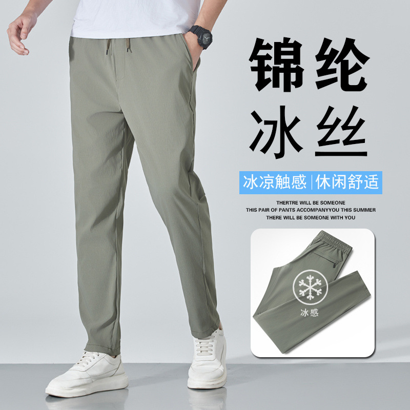 アイスシルクパンツ夏速乾性薄型ルーズストレートメンズスポーツカジュアルパンツカジュアル通気性高弾性夏