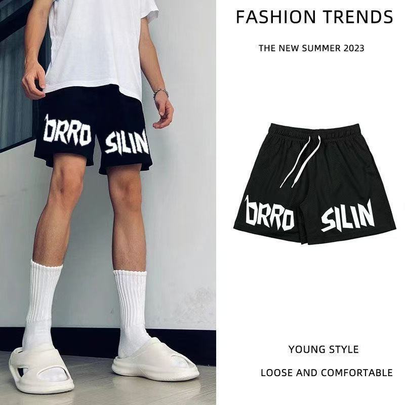 アメリカンイントレンディブランドレタープリントバスケットボールメッシュショーツメンズ夏多用途ルーズカジュアルストレートクォーターパンツ