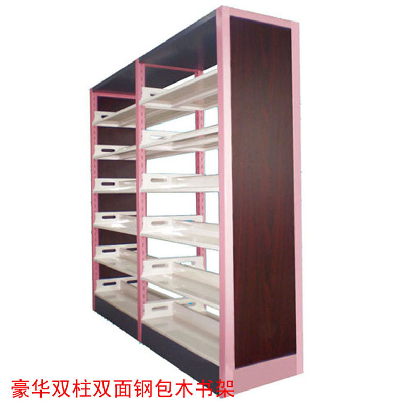 豪華双柱両面鋼包木鉄本棚高校図書館定期刊行物フレーム鋼木構造特殊本棚