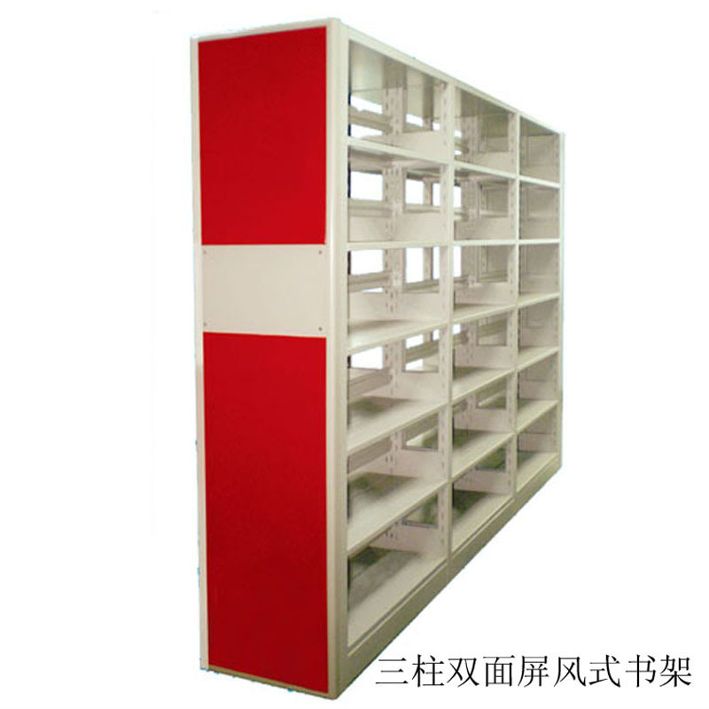 豪華双柱両面屏風式本棚三柱文書アーカイブ図書館学校閲覧室スチール本棚