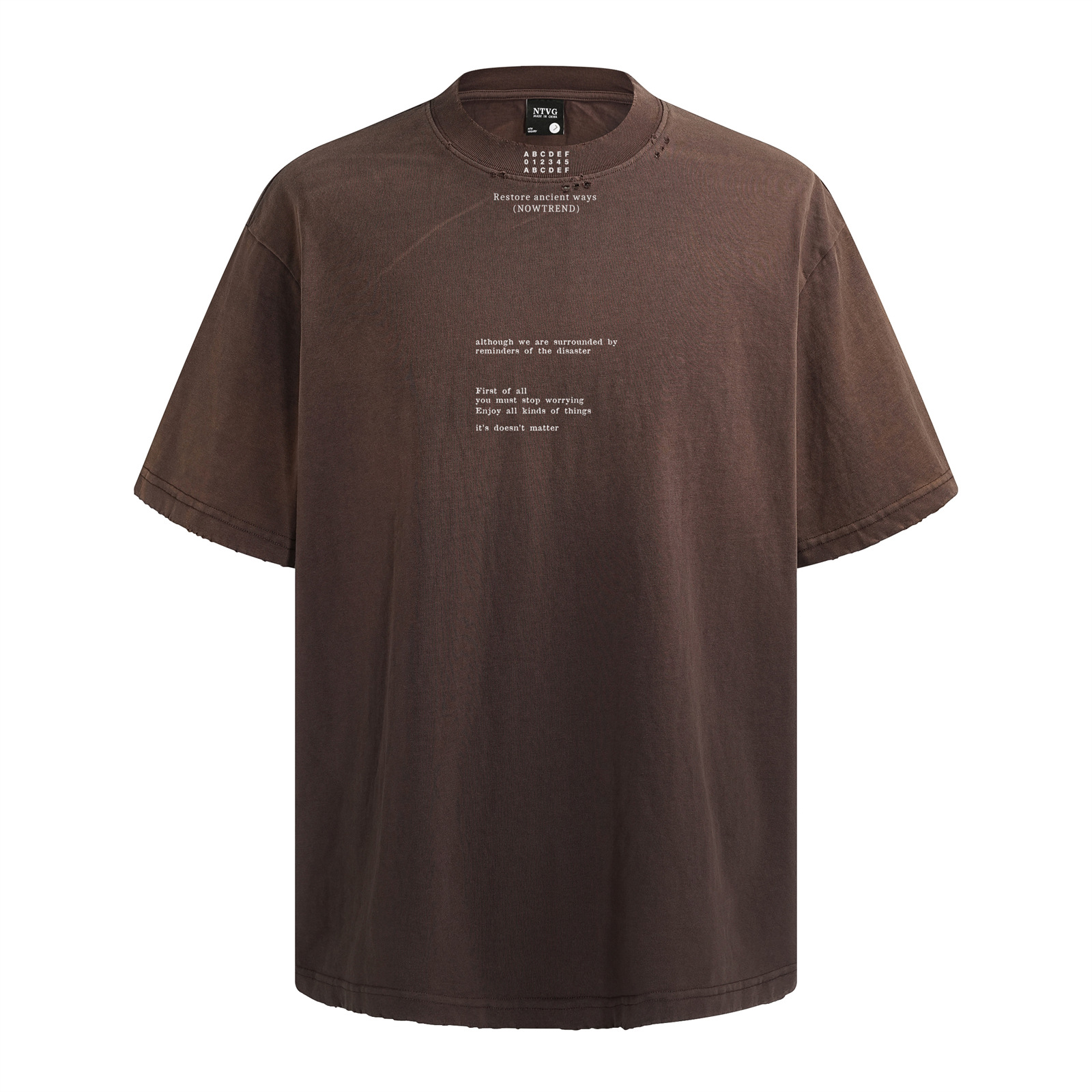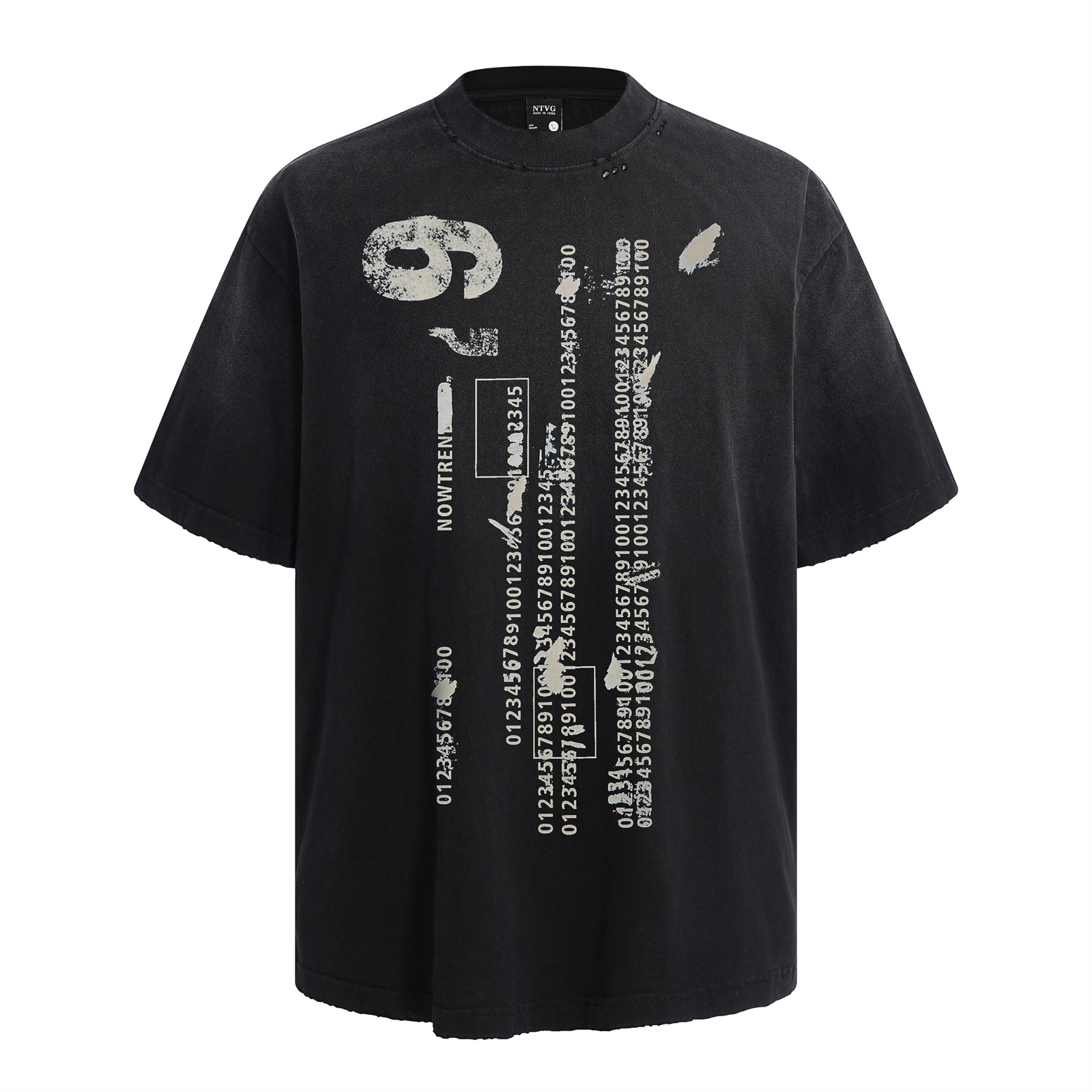 2025 夏の新ファッションブランドハーフスプレーほつれウォッシュレタープリント半袖 Tシャツ男性と女性のためのルーズカジュアルトップス