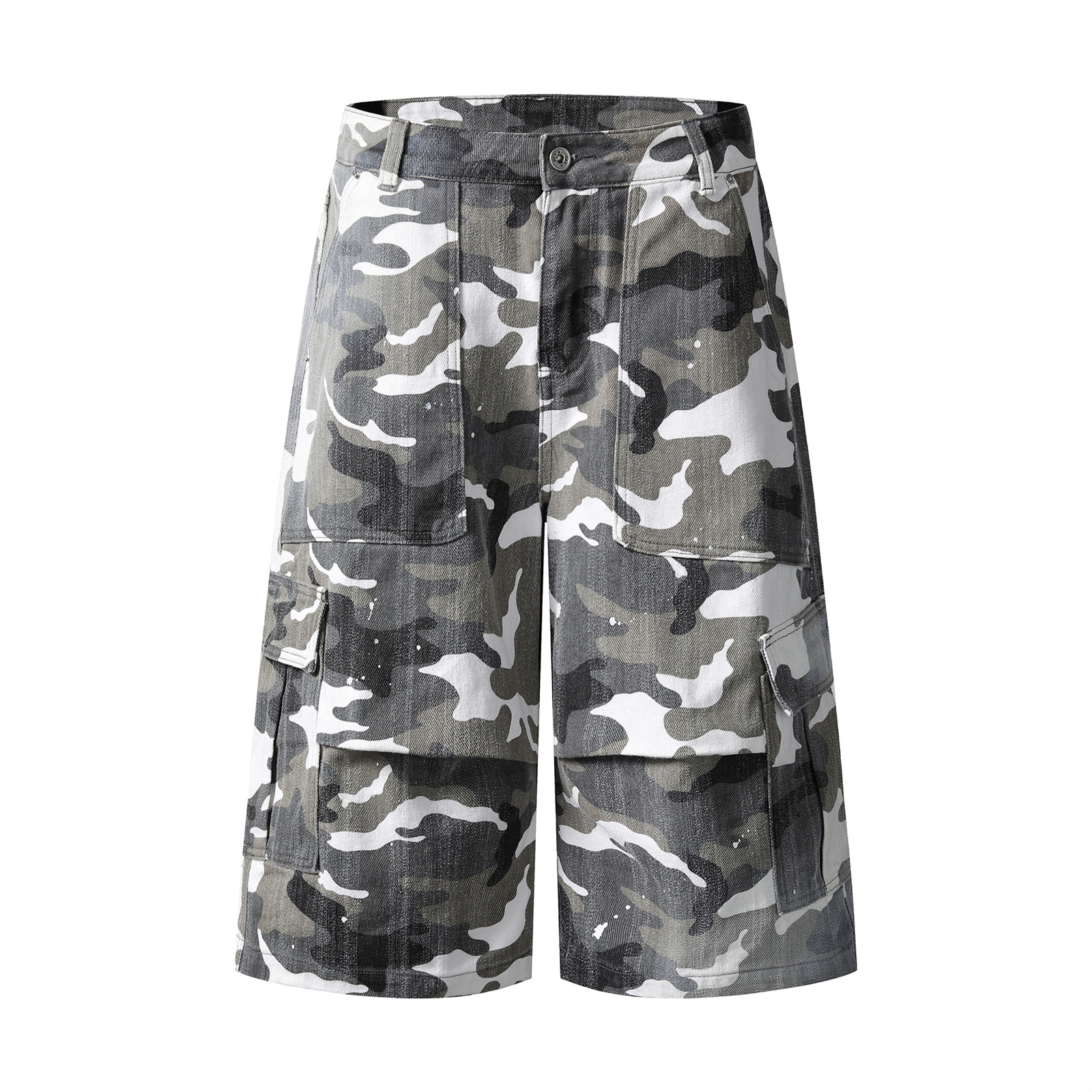 アメリカのレトロな多ポケット迷彩工装半ズボン男性夏のファッションブランドのゆるいカジュアルなデザイン感の中ズボン七分ズボン