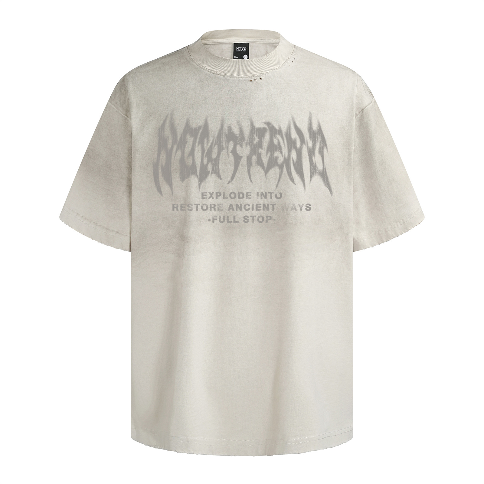潮牌半噴破洗水アルファベットプリント半袖tシャツ男夏ファッション個性ゆるいカップル上着
