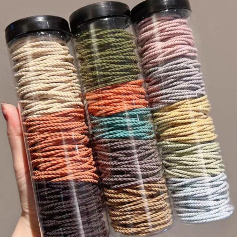 【100本入福利厚生】スレッドヘアーアクセサリー缶入りヘアーコルセット髪飾り高弾力性ポニーテール革筋