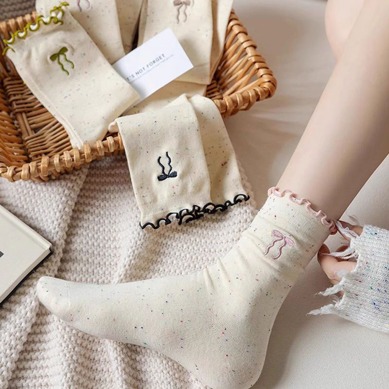 【5足組送料無料特典】かわいい通気性ソックス 春秋スタイル カタツムリリボンソックス