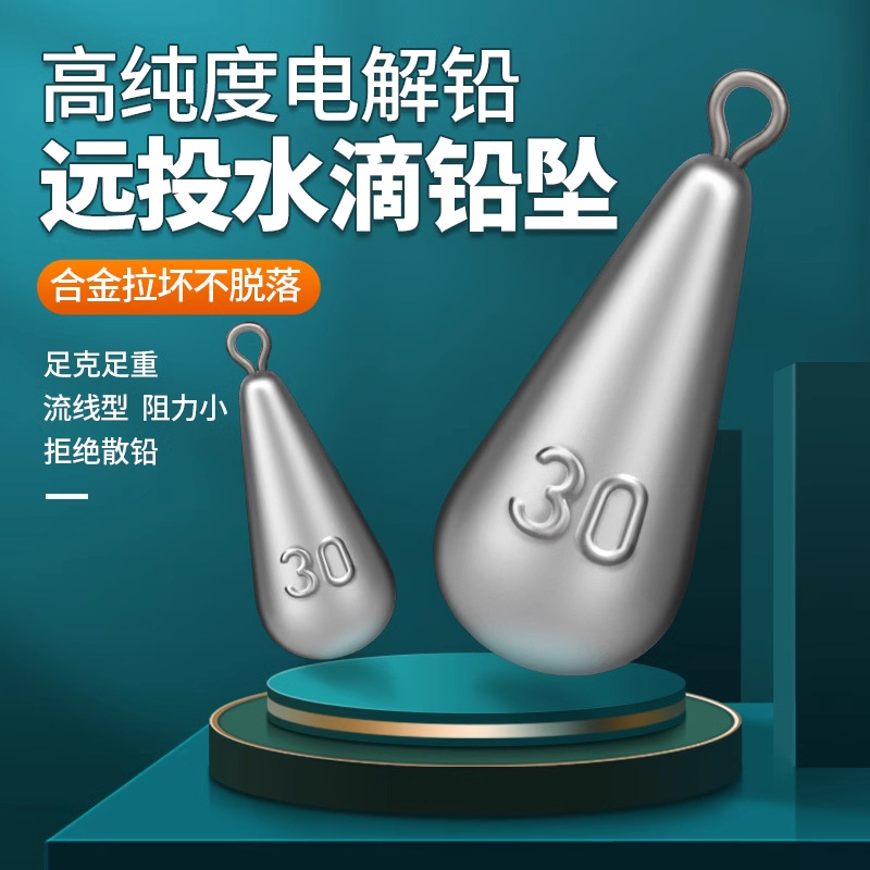 リング付き柳の葉型水滴型遠投鉛ペンダント、海竿投げ竿、重鉛塊釣り具小物