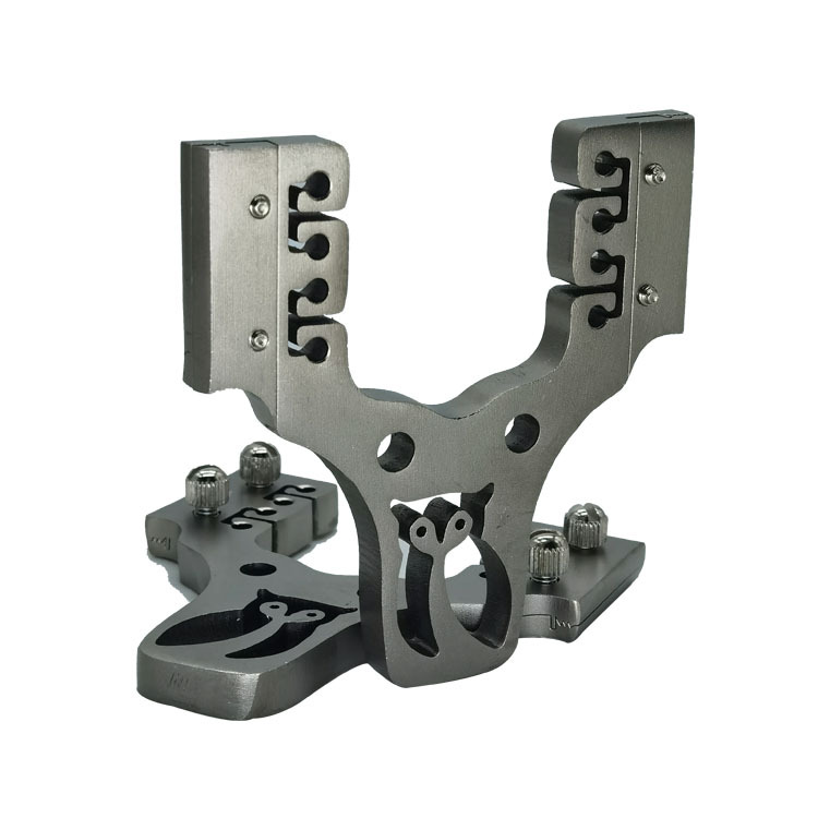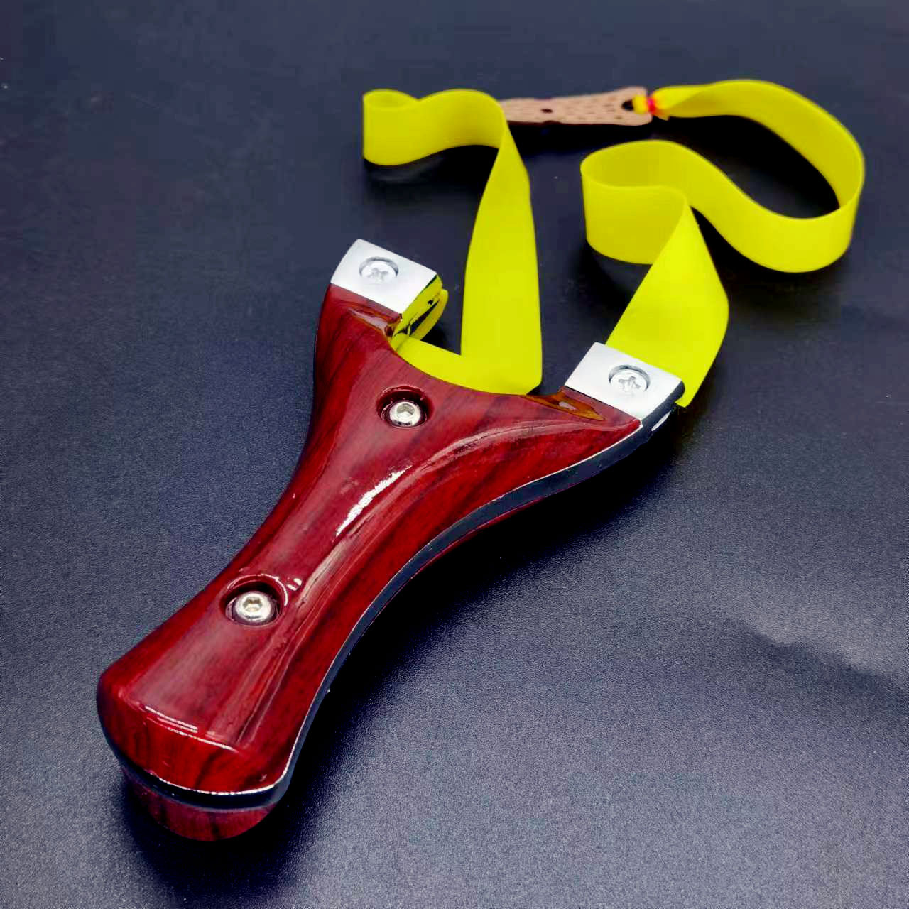 卸売りの新型の大盤のニワトリのパチンコの反曲の手の感の王の合金の樹脂の屋外の偏平な皮はパチンコの偏平な皮の筋を縛りません。